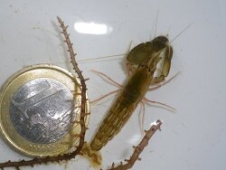 Mit Ls vor etwa einem halben Jahr eingeschleppt,aber gestern zum ersten mal gesehen.Lebt mit einigen Krabben friedlich in meinem 30l-Nano.