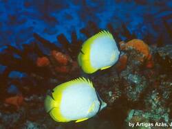 The Spotfin butterflyfish occurring in pairs or in small groups of 4 or 5, they swims and feeds over bare, sandy bottoms. This differs from other species of butterflyfish that mainly feed in shallow reef areas.