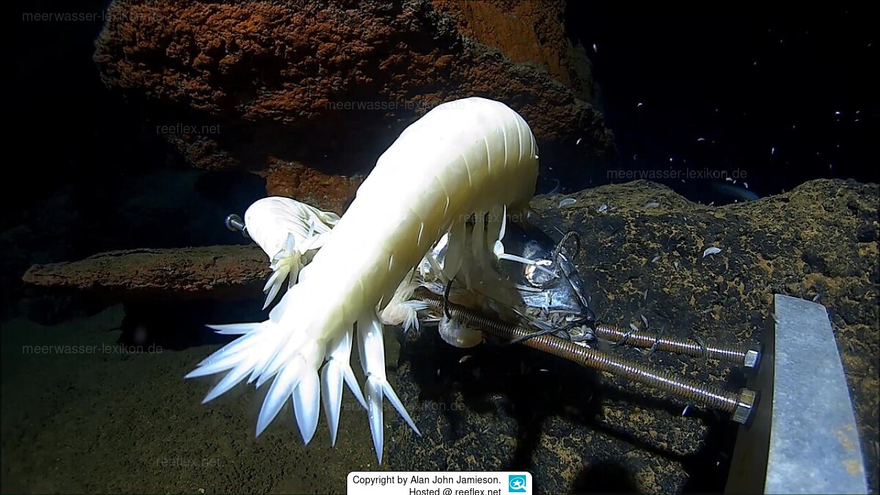 This deep-sea creature plays a special role in the food chain as a scavenger, feeding on dead fish, mammals such as dolphins, whales, sharks, tuna, swordfish, and sea lions. Seals, sea bears, and walruses, whose carcasses sink to the bottom of the sea.