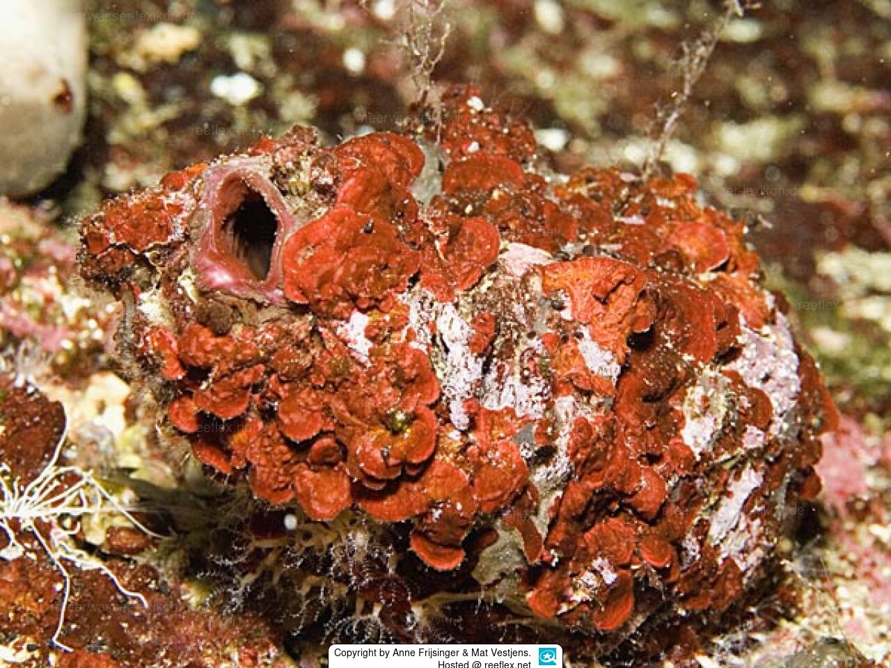 Most single found ascidian. Usually orange, sometimes reddish or brownish, often encrusted with different organisms.