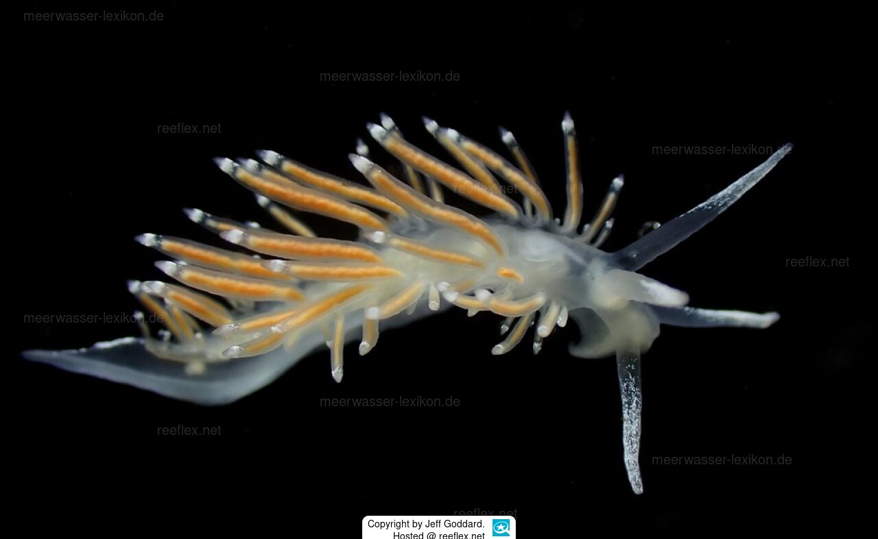 Translucent white body with red tentacles. All tentacles with white tips. Feeds on hydroids (Eudendrium arbusculum).