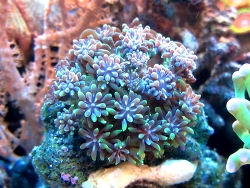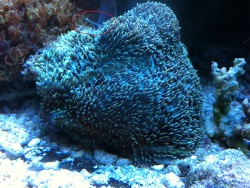 Habe diese Koralle vor ca. 2 Jahren von einen befreundeten Händler geschenkt bekommen , war damals in einen jämmerlichen Zustand . Wuchsform halbkugelig , die halbe Koralle besaß damals kein lebendes Gewebe mehr , nach ca. einen halben Jahr hatte sich die Koralle komplett wieder regeneriert und zeigte ihre volle Schönheit . Habe sie bis heute in mein Herz geschlossen , obwohl ihre langen Kampftentakel bisweilen Probleme machen . Sehr dankbares Tier , wenn man das von einer Koralle mal sagen darf , bekommt regelmäßig von dem Tubastreaplankton eine Portion ab , nimmt wie alle LPS gerne mal Nahrung auf .