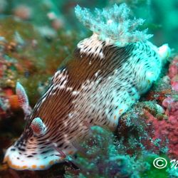 Very similar are Chromodoris striatella(large browish patches),Chromodoris mandapamensis( covered with rounded dark brown spots)and Chromodoris lineolata (black line at the inner edge of the mantle margin).